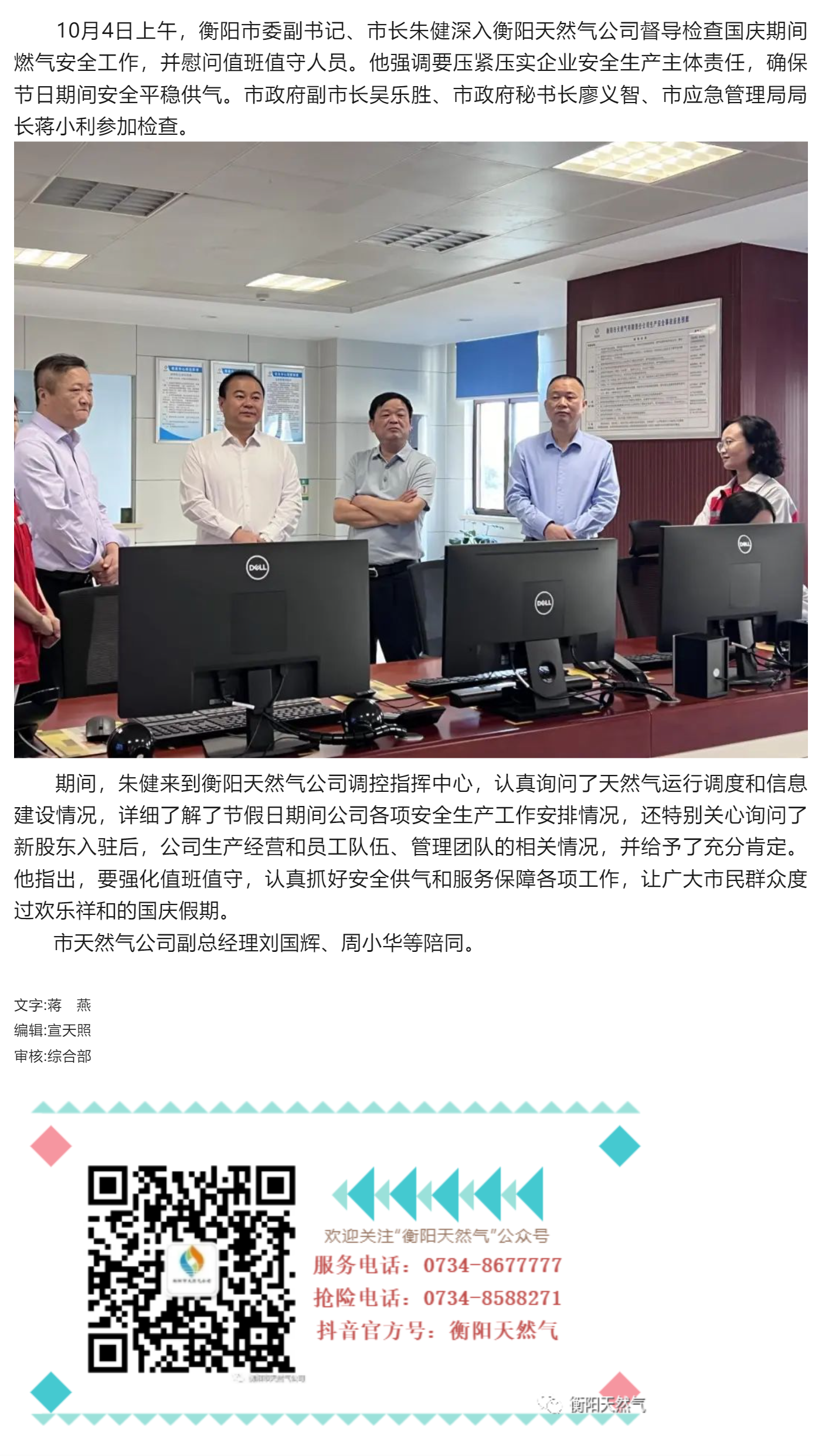 市委副書記、市長朱健督導(dǎo)檢查衡陽天然氣公司國慶期間安全生產(chǎn)工作